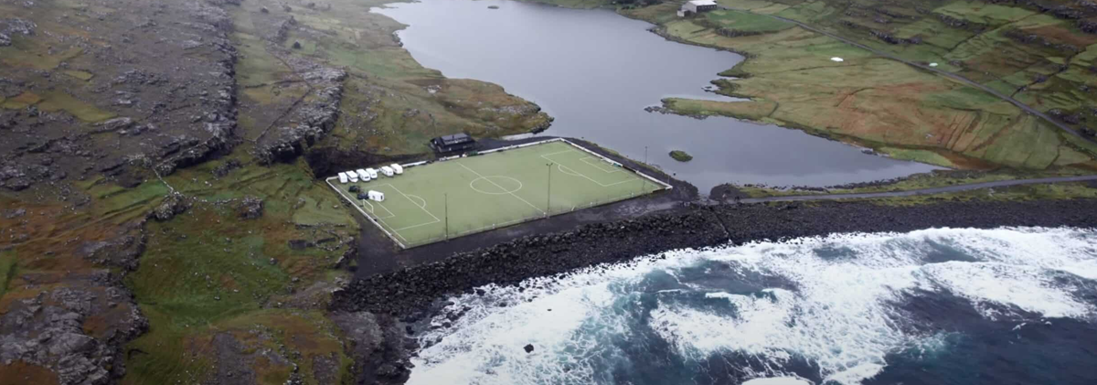 For years, the local football club needed a home. In a village squeezed between a mountain and the sea, flat land is the most precious of commodities. The only viable location was a narrow, windswept stretch of ground called á Mølini, right on the water’s edge. It was barely wide enough for a pitch and was completely exposed to the elements. But it was the only option. An artificial turf pitch was laid, surrounded by little more than a small gravel path. There were no stands, just a pitch, some goals, and the vast, unforgiving ocean.